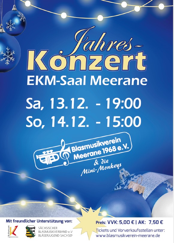 Der Blasmusikverein Meerane e.V. lädt herzlich zu unserem traditionellen Jahreskonzerten ein!